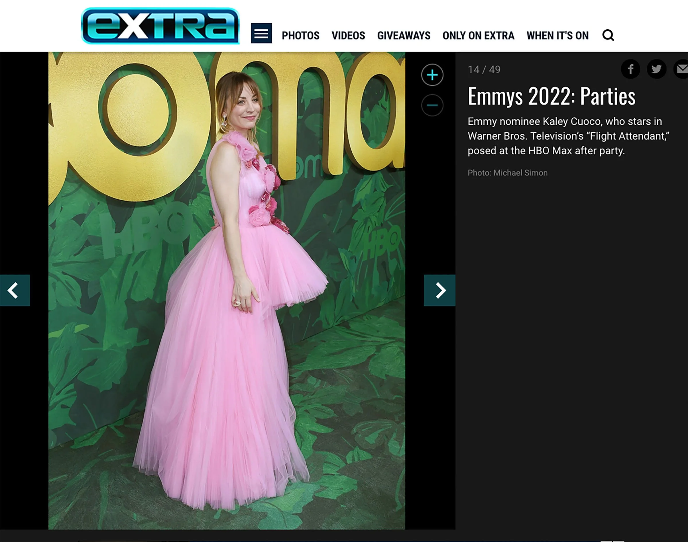 Caption that ran: Kaley Cuoco celebrated her Emmy nomination for her starring role in Warner Bros. TV’s "The Flight Attendant."