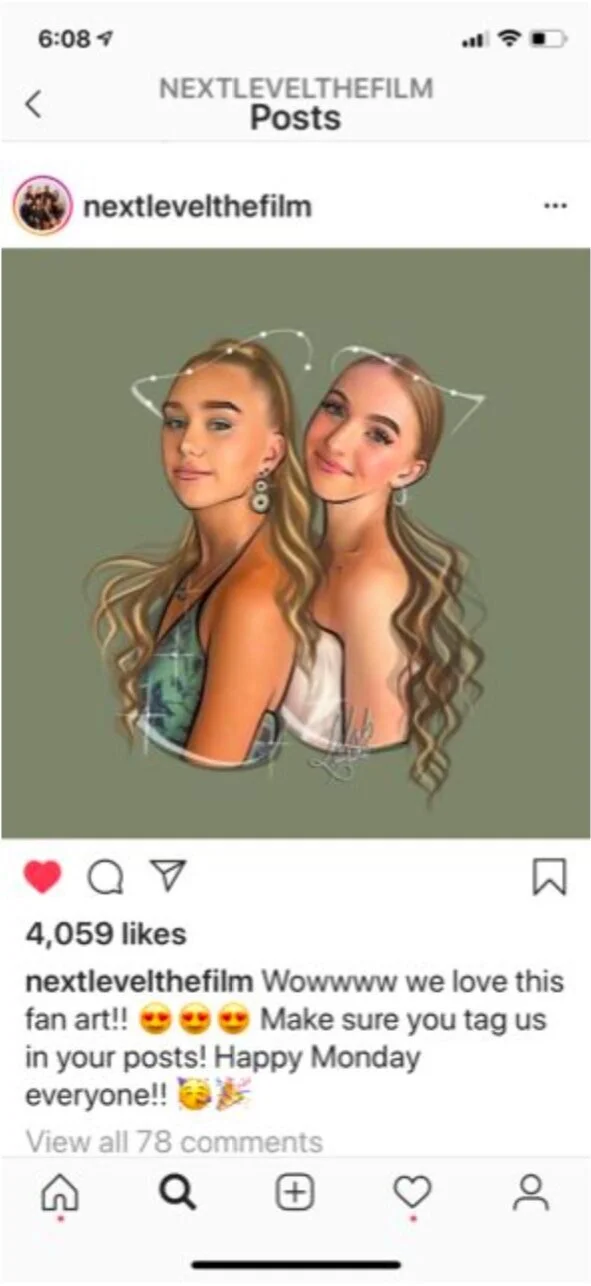 The stars of Next Level were instrumental in how the project was conceptualized and created, down to helping write many of the film's 12 original songs. This hands-on approach has electrified the film’s built-in fanbase throughout its production, as our stars have kept their followers involved every step of the way. Since Next Level’s limited theatrical release a few weeks ago, our cast’s fans have taken ownership of marketing the film themselves, even creating and promoting their own customized trailers, photo edits, and animated shorts; hosting viewing parties; and other unique forms of involvement.