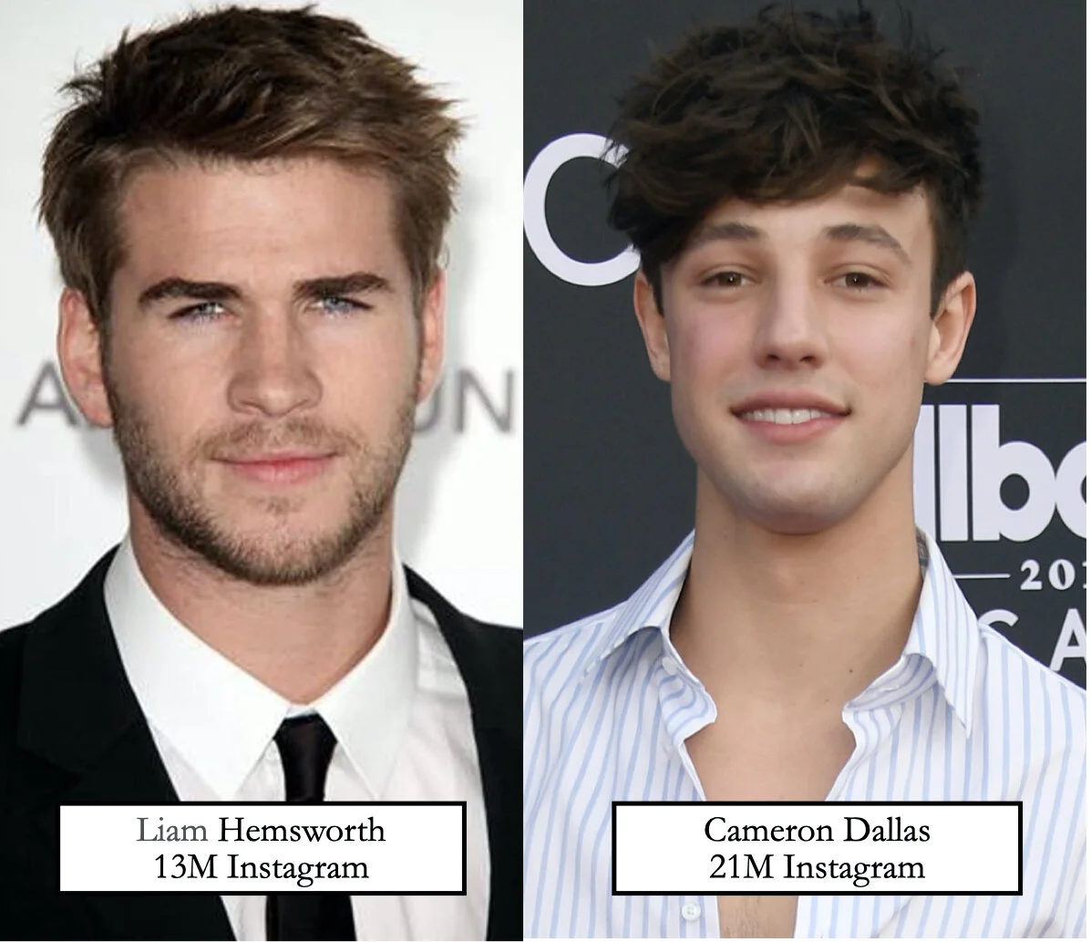 Their logic is easy to understand. The funny thing is, many celebs, even the A-List ones, can’t compete with the biggest influencers when it comes to followers. A-List superstar Liam Hemsworth has 13 million followers on Instagram; Cameron Dallas, who you may never have even heard of, has 21 million.